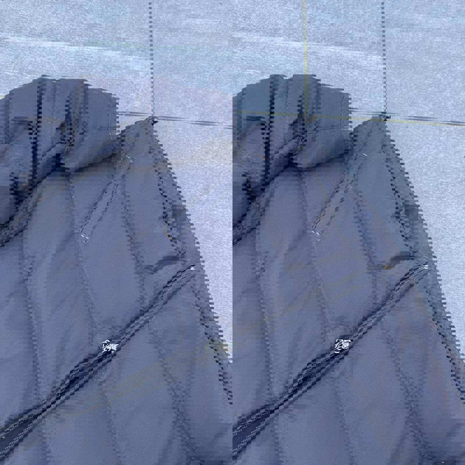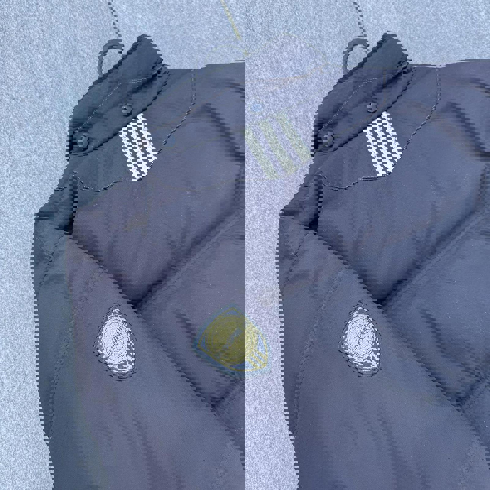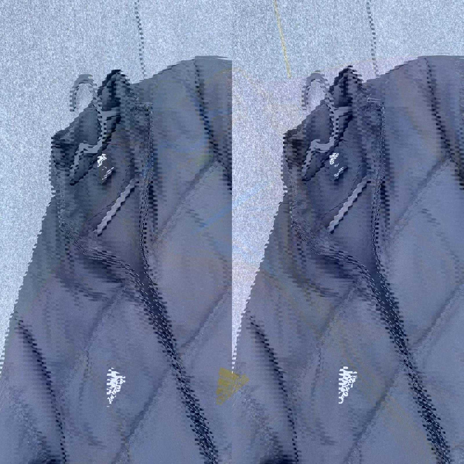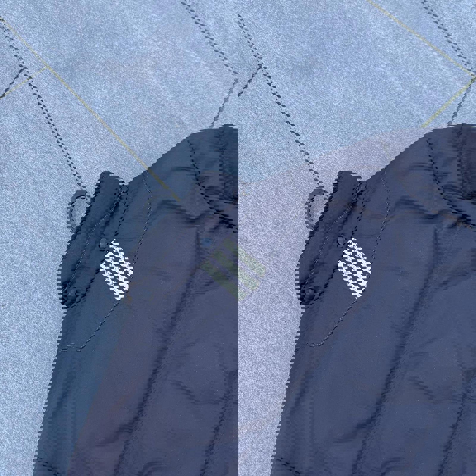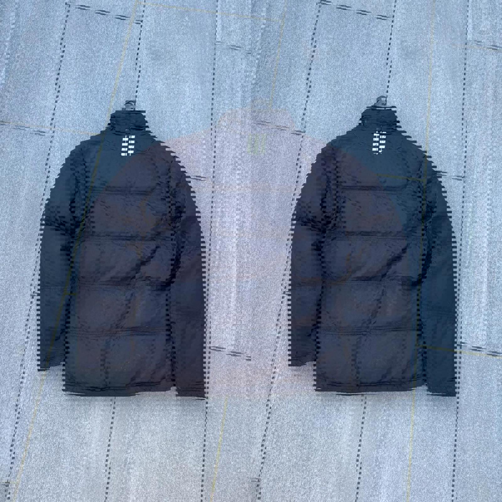Classic 2000s Adidas padded puffer with gold Trefoil logo on chest, 3-stripe detail on the back, and retro crest patch on the sleeve. Heavy insulation, full zip front with high neck, and two zip pockets. Timeless streetwear piece for the colder months.
