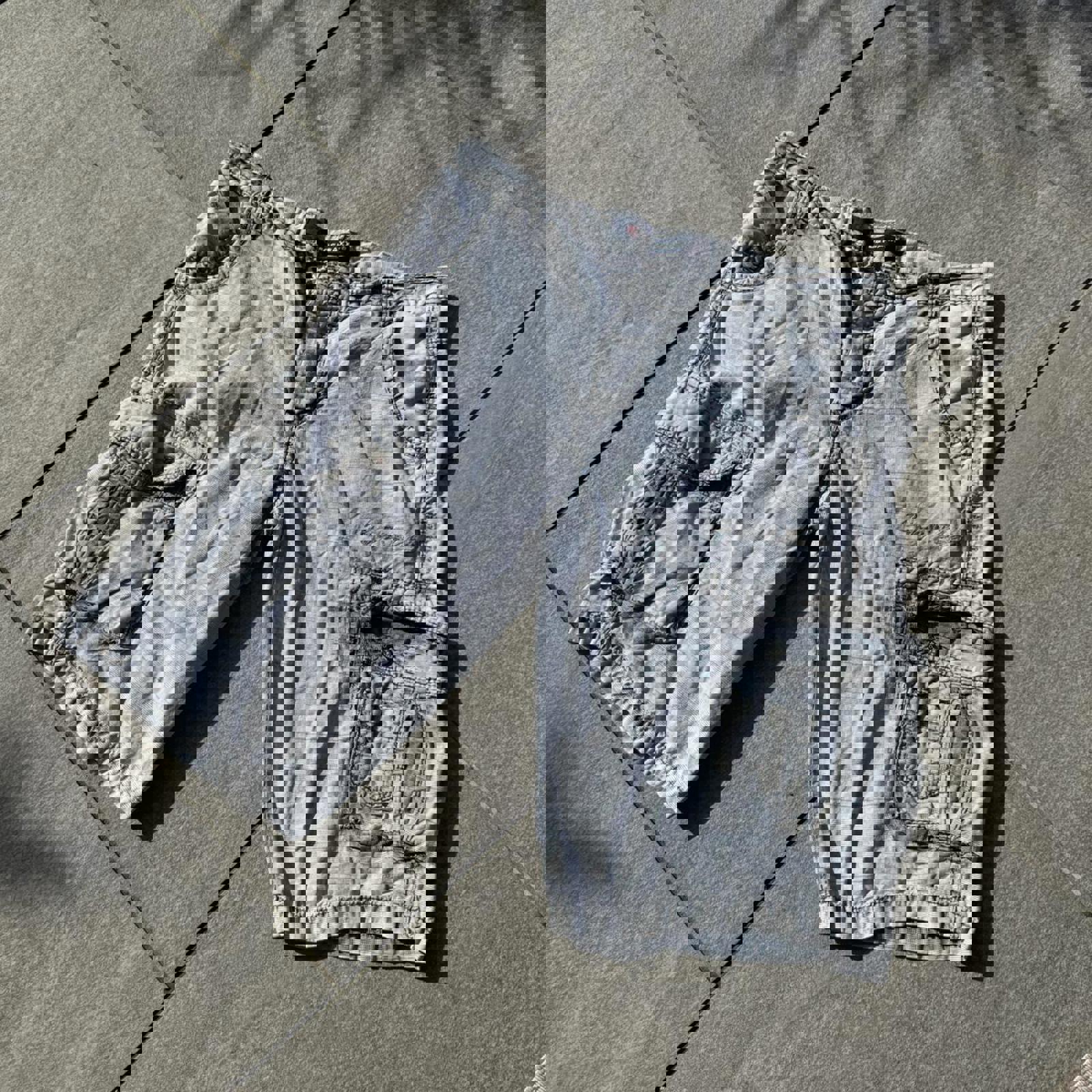 Statement Cipo & Baxx shorts in a washed light grey with heavy-duty cargo pocketing and embroidered branding. Distinctive paneling and contrast stitching give them that bold Y2K/utility vibe.