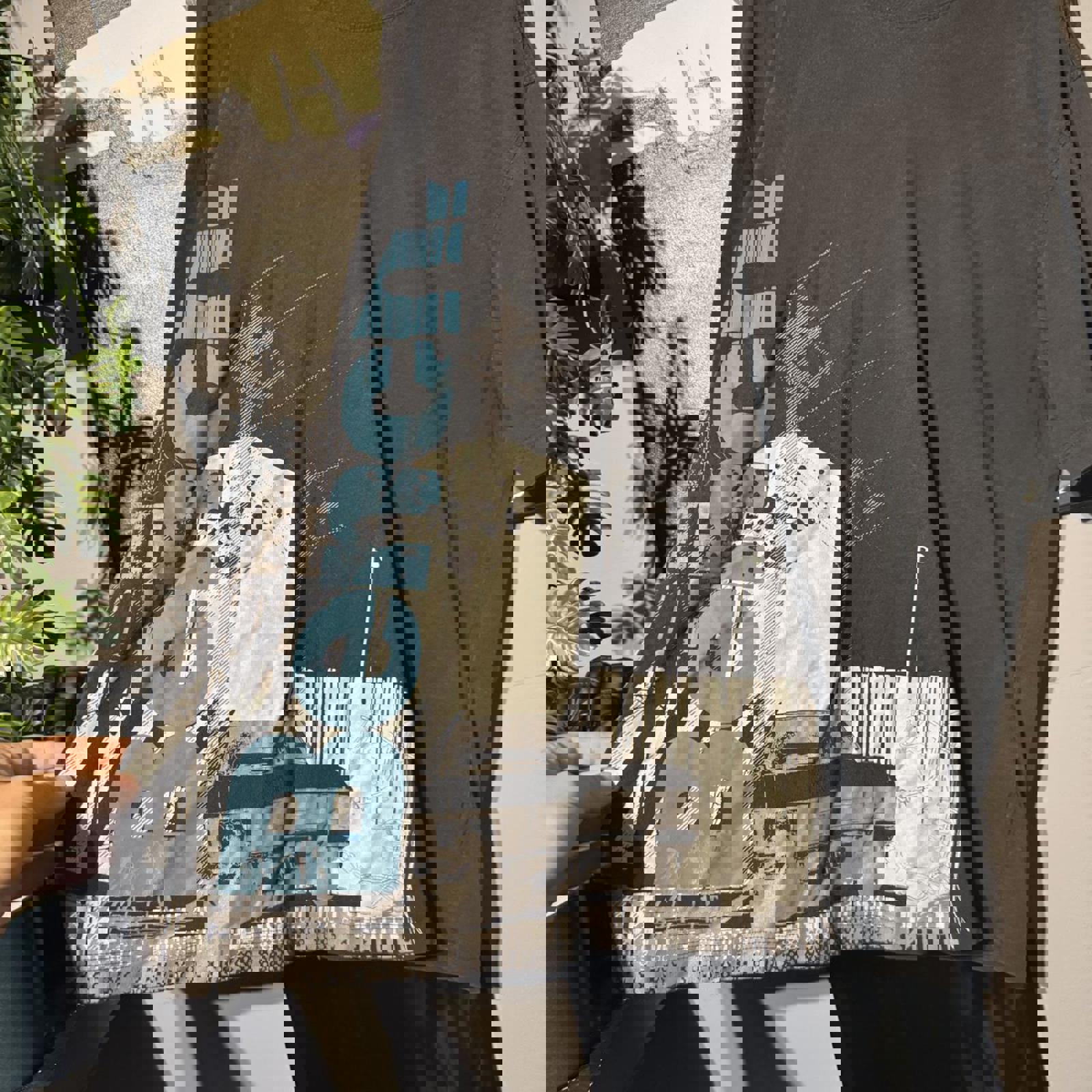 ▪️ Additional info: Black base with full front graphic print featuring layered typography and vintage car artwork in blue, white, and grey tones. Subtle Bench logo hit on back shoulder and side seam tag. Classic early-2000s streetwear look — lightweight cotton and naturally worn finish.